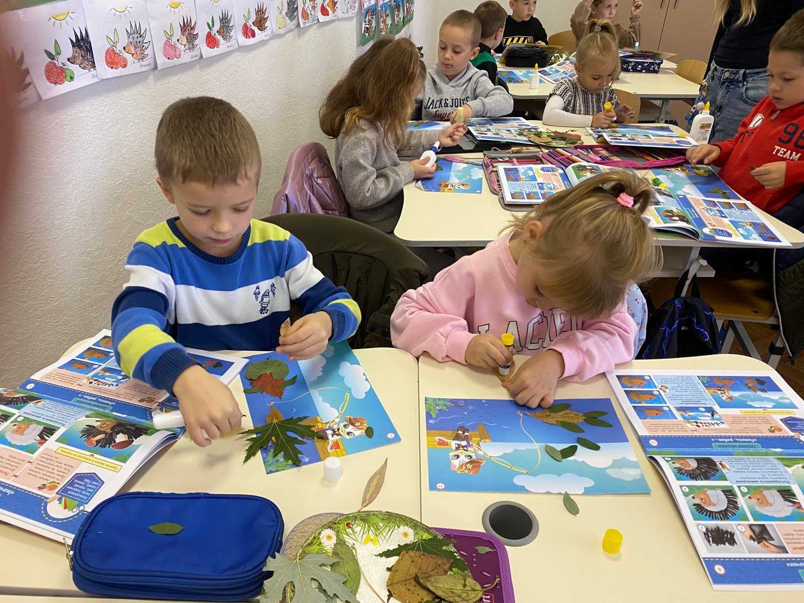 7 Жовтень Аплікації в 1-Г класі Новини Залиште коментар Осінь спустилась на жовті поля, ліс пофарбований мріє здалля, вітер холодний виє, гуде, зносить із дерева листя руде. Сьогодні школярики 1-Г класу досліджували осінні листочки та створили свої чудові аплікації.