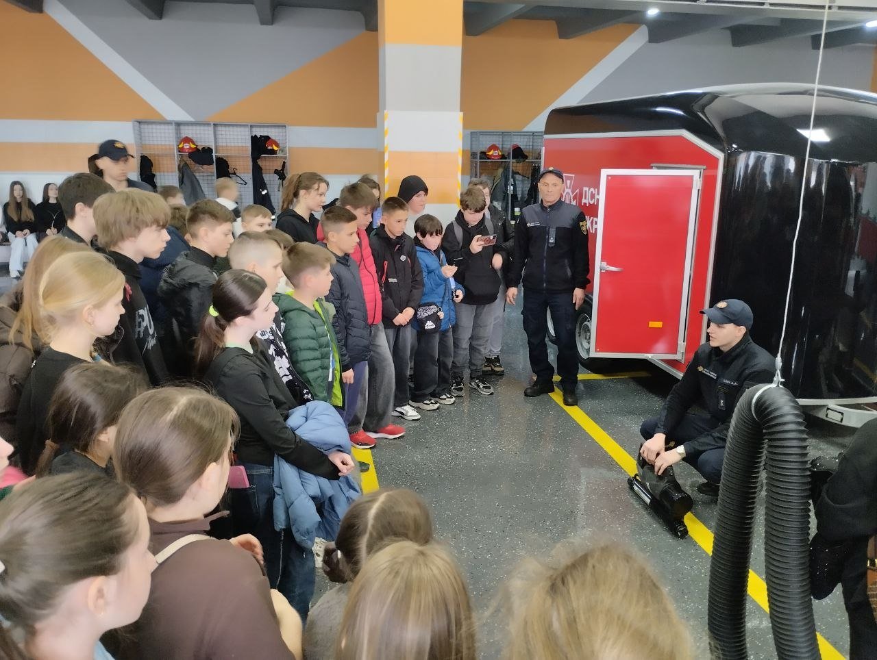 Рятувальники продемонстрували спеціальне обладнання та техніку, а також провели практичні заняття, під час яких школярі мали змогу спробувати себе у ролі вогнеборців.